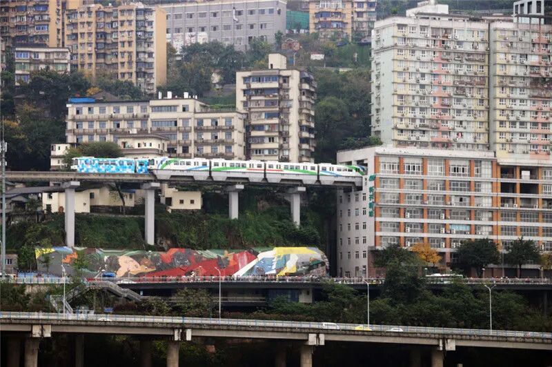 既是“山城”也是“江城”的重庆,在城市交通建设上几乎没有平面规划的概念,高架路、隧道、索道和桥梁比比皆是。重庆的轨道交通,很少紧贴地面或者穿行于地下,一会儿跨过江面,一会儿横过楼顶倒是常态。一度成为网红景点的2号轻轨李子坝站,甚至直接就建在一栋居民楼的第8层,列车就这样从群山间蜿蜒而来,从楼宇间呼啸而过。