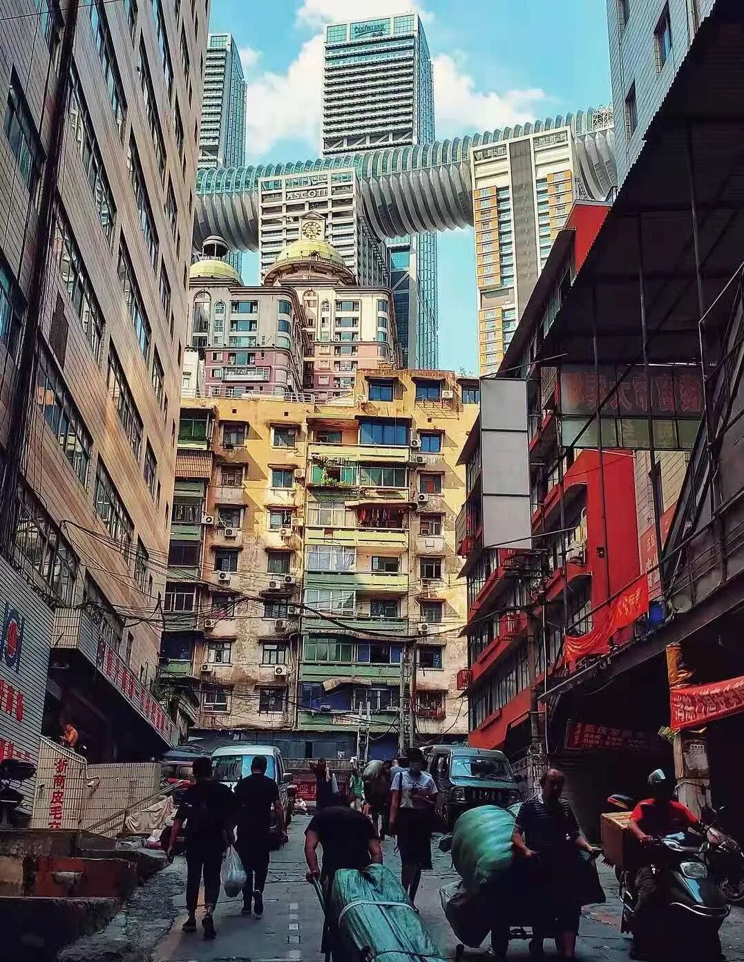 如果说以上种种都还只是表象,重庆城区无处不在的现代-传统对比,则为赛博朋克之城的说法又添了一道论据。