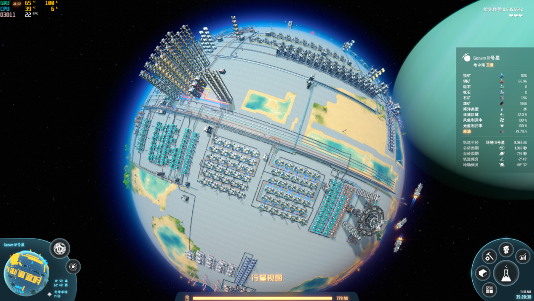 这个游戏的乐趣来源,在我看来很长时间里都非常纯粹:建设、建设以及建设——除了日出时分球形地图所独有的光影之美能让我沉迷建设的眼睛稍稍远眺一会儿。从零开始建设一个全自动化的工业生产系统,没有敌人,没有天灾,最终只为造出那壮丽绝伦的戴森球,将整个星系的能源为我所用,这就是《戴森球计划》。