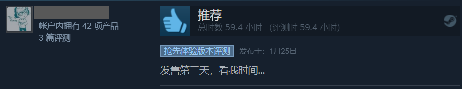 Steam上一位游戏发售三天已经肝了59小时的玩家