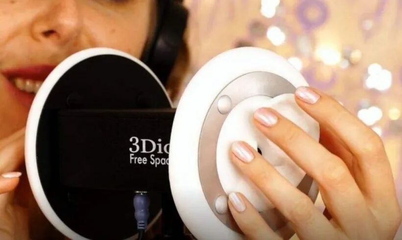 ASMR艺术家的涌现也推动了ASMR专业录音设备的普及,比如著名的3Dio双耳麦克风,在今天可能已经成为ASMR视频的泛用录制工具。它的设计非常考究,头梁宽度取自人体头部宽度的平均值,模拟耳朵材质的选用,包括声音在衰减过程中的算法,都是有考究的。