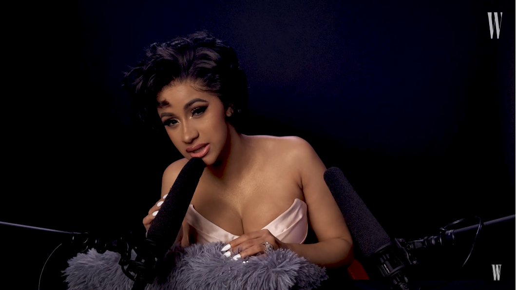 值得一提的是,素来举止夸张的美国说唱女歌手Cardi B,曾在海外杂志W Magazine的邀请下参与过一次ASMR采访,一贯聒噪的“卡老师”在这期节目里表现出了惊人的ASMR专业素养,对双声道耳语的编排、触发道具的使用等都达到了无师自通的地步,这期视频在油管的总观看数超过4700万次。