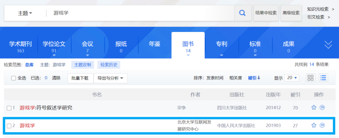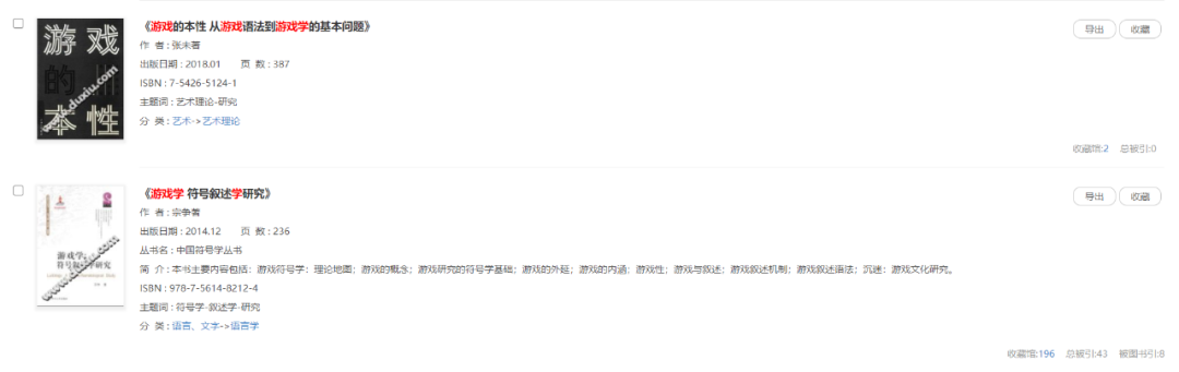 读秀知识库能搜索到的2019年之前的两本“游戏学”相关书籍