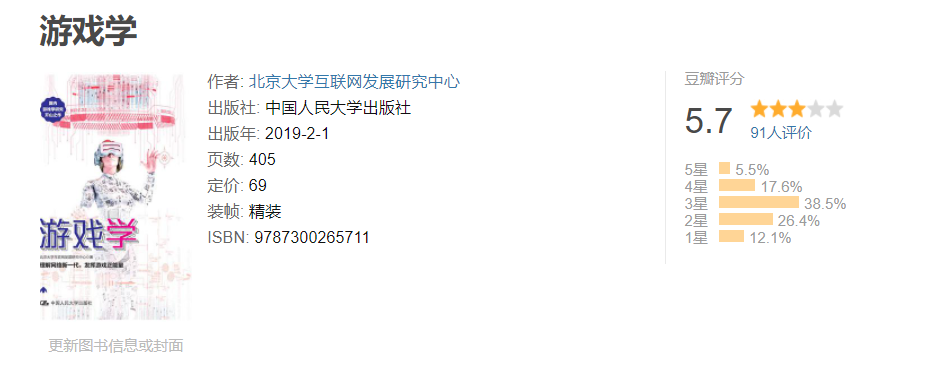 以上几条,都是豆瓣用户对《游戏学》一书的评价,该书自称“国内游戏学研究开山之作”,2019年2月出版。