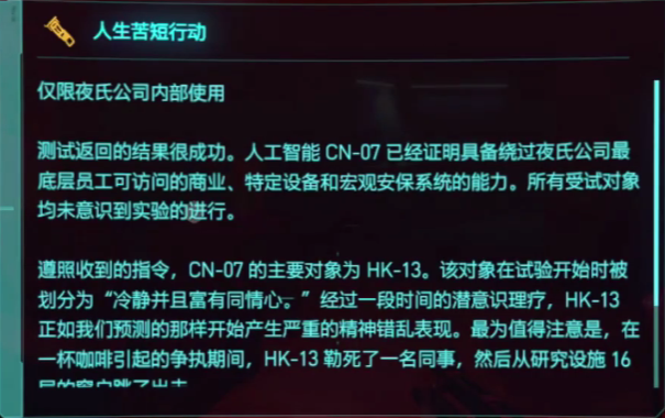事实上,《2077》把关于AI阵营的很多线索都放在了不起眼的地方。