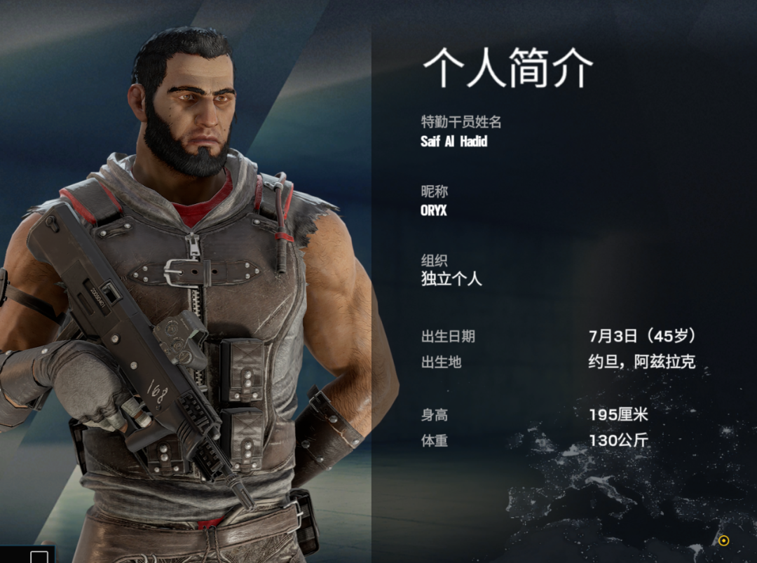 当然真正的“放弃治疗”还属第五年第一赛季的干员Oryx,他,身高1.93米体重130公斤,可以肉身撞破一面墙,可以纵跳超过3米,身体能力直逼美国队长。