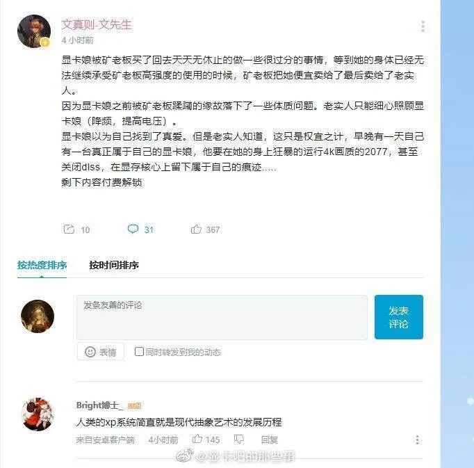 还有人给下矿显卡编出了小故事...不得不说人的xp真的潜力无限