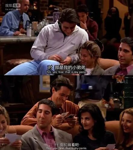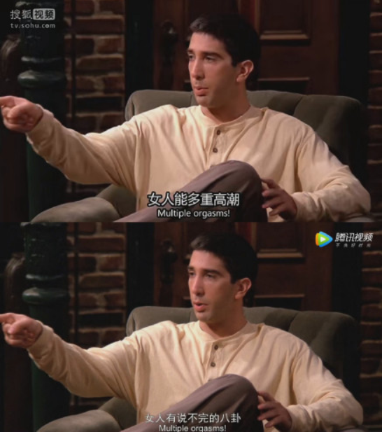 从B站可以在节目放出后动态更改字幕版本来看,这次大范围的删减和魔改可能是几家流媒体自发的行为,但弄不清楚的还是删减的尺度,我能告诉你的是原版《老友记》的一个花絮: