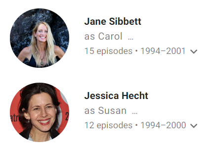 根据IMDb的数据,Carol和Susan的演员,JaneSibbett和Jessica Hecht分别在全剧中出场了15集和12集,也就是说,未来还会有大量的关键桥段空白。