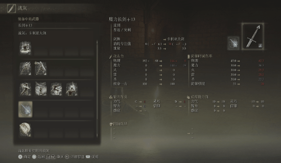 在《黑魂3》中存在感不高的“战技”也以“战灰”的形态回归,还带上了变质系统,算是一个挺大的优化,在获得新武器的战技后你可以替换到任意适配的武器上,变质也同样如此,不再需要另外的素材进行升级,算是大大降低了玩家在武器上的取舍投入,所以偶尔也会出现巨斧可以使用小斧头的连续挥击这种情况,看起来非常的猛男。
