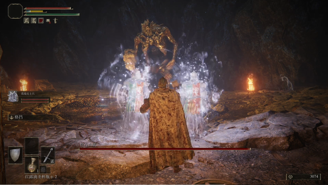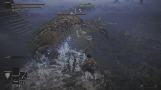 说到战斗,就不得不提本作的战斗强度被宫崎英高肆无忌惮的提高了很多,褪色者的战斗能力可以说是历代主角之最,游戏开始就自带一个非常强力的“防御反击”技能,在防御住敌方的攻击后可以快速反击,造成大量削韧,且毫无时机要求,容错率和收益都相当不错,显然是前期打群架时的好选择。