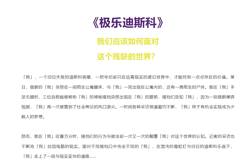 颇为讽刺的是,“《极乐迪斯科》”还在第九届1905国际当代戏剧节的宣传里还被当做重点作品介绍给剧迷。