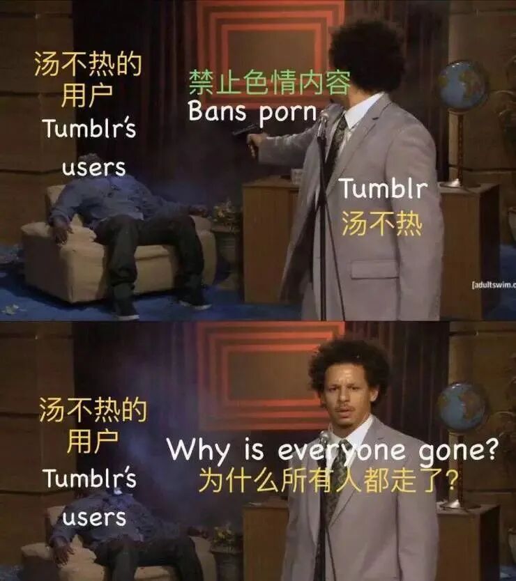 然而在做大之后,成人内容也开始让Tumblr不受主流视野待见,加上商业发展的颓势,Tumblr不得不选择切割成人内容,反而加速了自己的衰落。