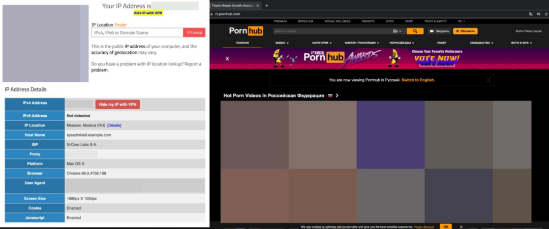 不过很快,这个消息被一位记者证实是虚假信息,为了求证,他们甚至登陆了VK(相当于俄罗斯的脸书),确保自己的IP地址在莫斯科,然后打开了P站,得出了以下画面。