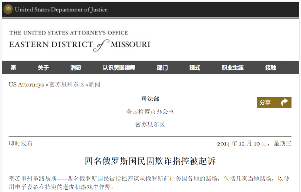 美国司法部的公开判决中,详细记录了俄罗斯“赌神”黑入老虎机的传奇故事,讲述其如何从三个州的十家赌场里赢得了百万美金。