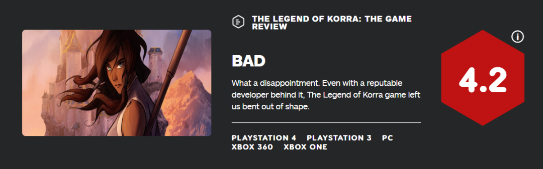 要命的是,《科拉传奇》主要面向欧美市场,《降世神通》又是人气极高的动画系列,《科拉传奇》的糟糕质量引来了欧美媒体和玩家的一顿弔喷,喜提IGN 4.2分,GameSpot 3分的豪华套餐。