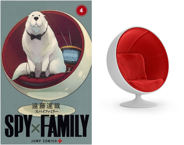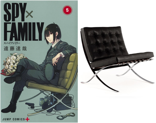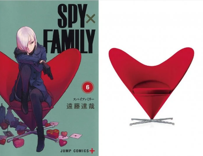 这里补充一个细节,《间谍过家家》漫画单行本封面上每个角色坐的椅子均来自现代著名的大师设计,其中不乏红点设计奖的获奖作品,在各种时尚杂志(以及我大学的家具设计课本)上都有频繁出现。