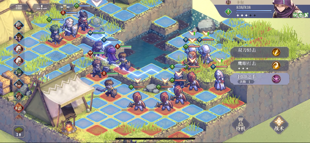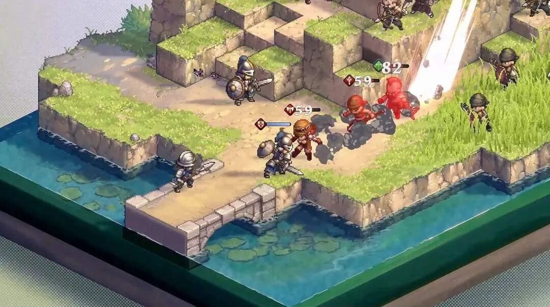 不同的职业将在战场上大展身手,因为地图采用块状地形组成,立体地形带来的高度差让战斗更加有趣。高低跳值更高的角色可以翻跃大于两格的地形,绕开敌人包抄后排;拥有击退技能的角色,可以将敌人从山崖上打落造成跌落伤害;如果敌人的身后是深水区,可以直接完成溺水击杀,整体来说是一个可以充分发挥玩家想象力的战斗玩法。
