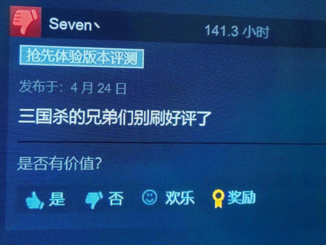 《鬼谷》玩家为了把《鬼谷八荒》刷到差评榜第一,正在有组织地为《三国杀》打好评。