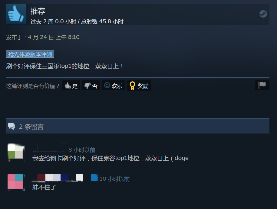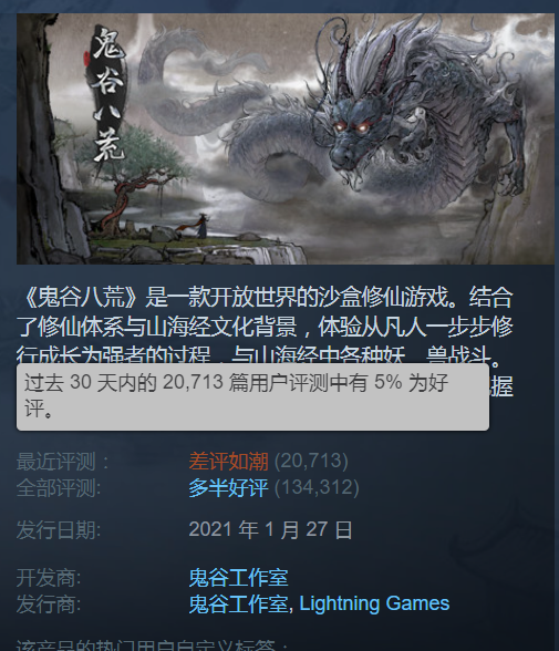 恐怕不是,因为当你打开最近的评价,会发现这些好评的往往来自《鬼谷八荒》的玩家。