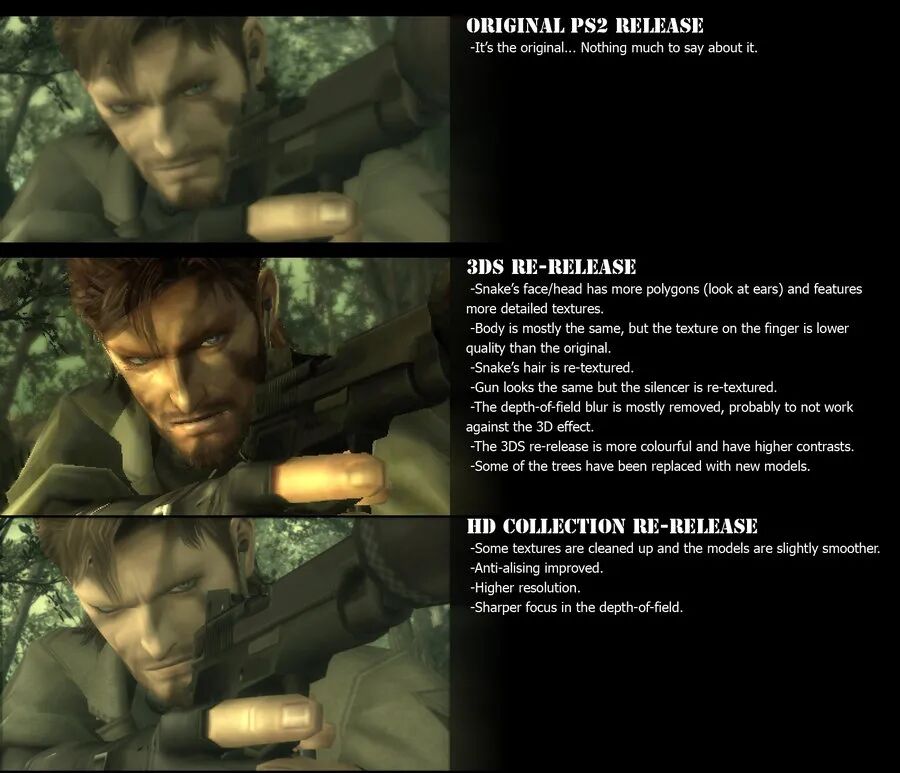 《MGS3D》材质更新,操作更舒适,而PSV只能玩原味的HD版