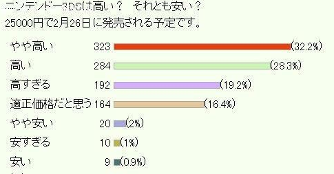 当年的3DS价格调研,将近80%的玩家认为3DS定价过高