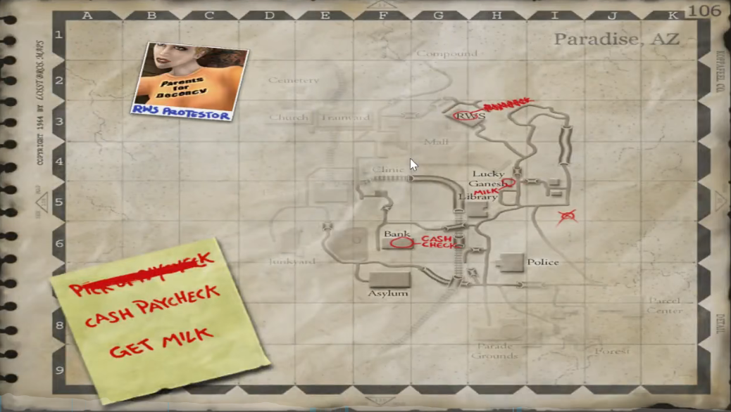 甚至相比其它15+游戏里的不断打坏蛋的那种任务,《邮差2》的每个章节任务都是什么领工资,买牛奶,给岳父扫墓,这样贴近生活,人畜无害的任务。