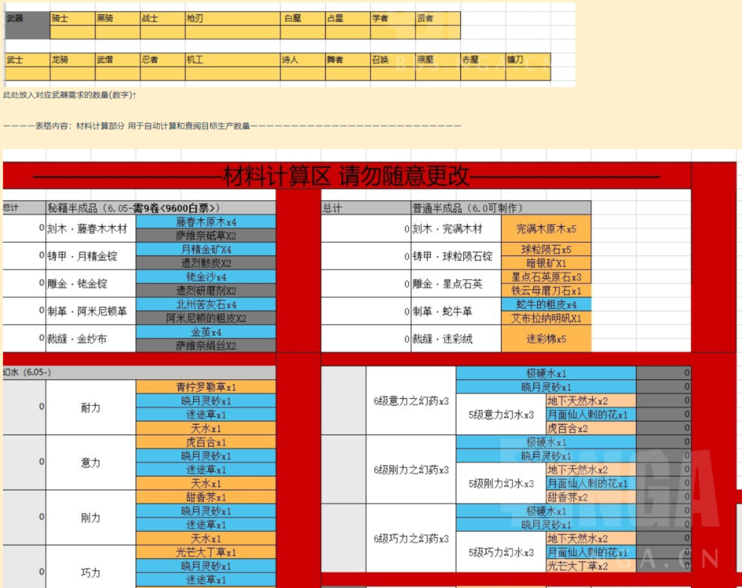 来自NGA用户“AirLibta”《580材料自动表》(可自动计算制作装备所需的素材)