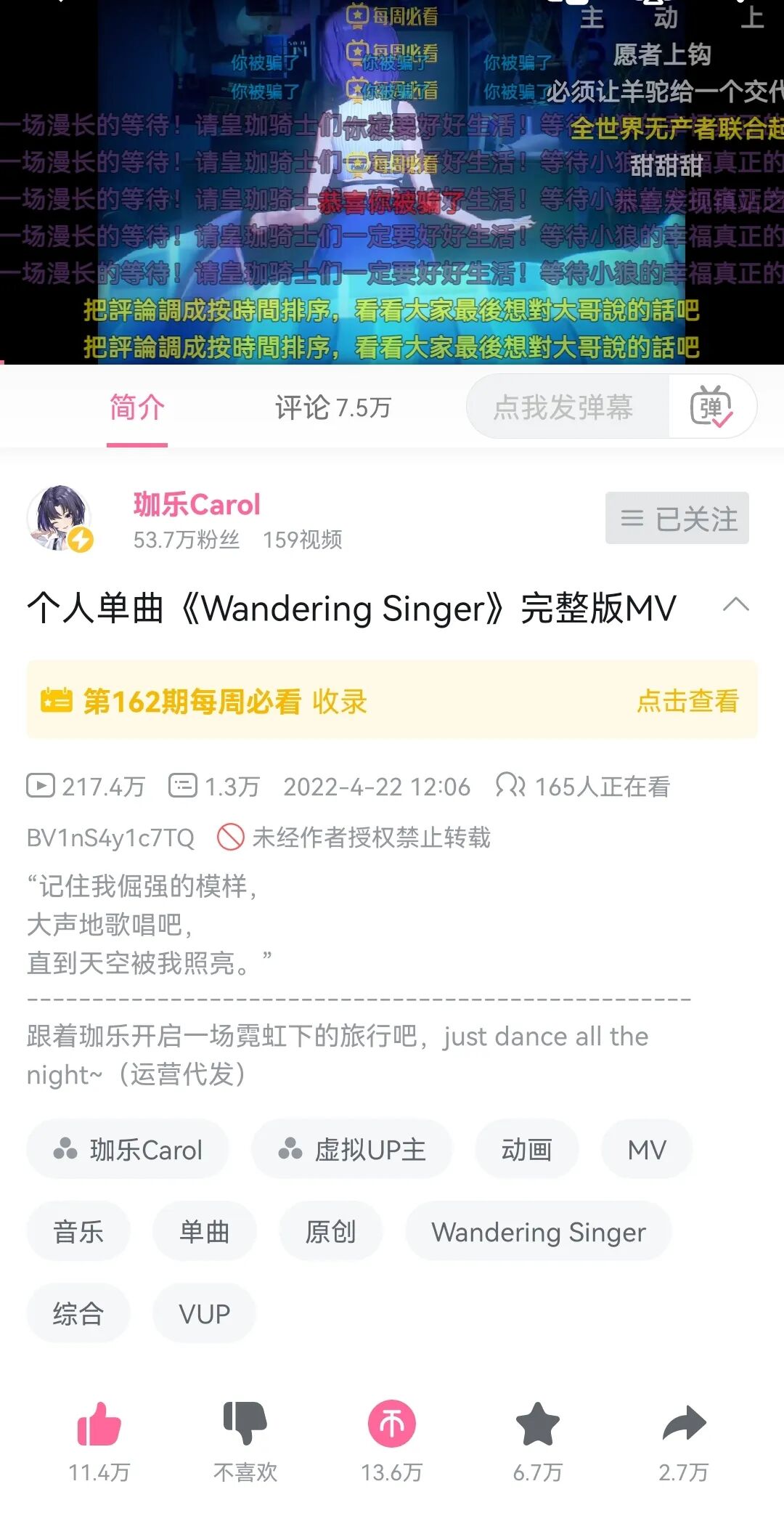 其中最喜欢的,还是那个紫色短发的【珈乐Carol】,当初也是偶然间被粉丝“骗进”她的翻唱视频,才开始了解这个组合以及其它虚拟主播。