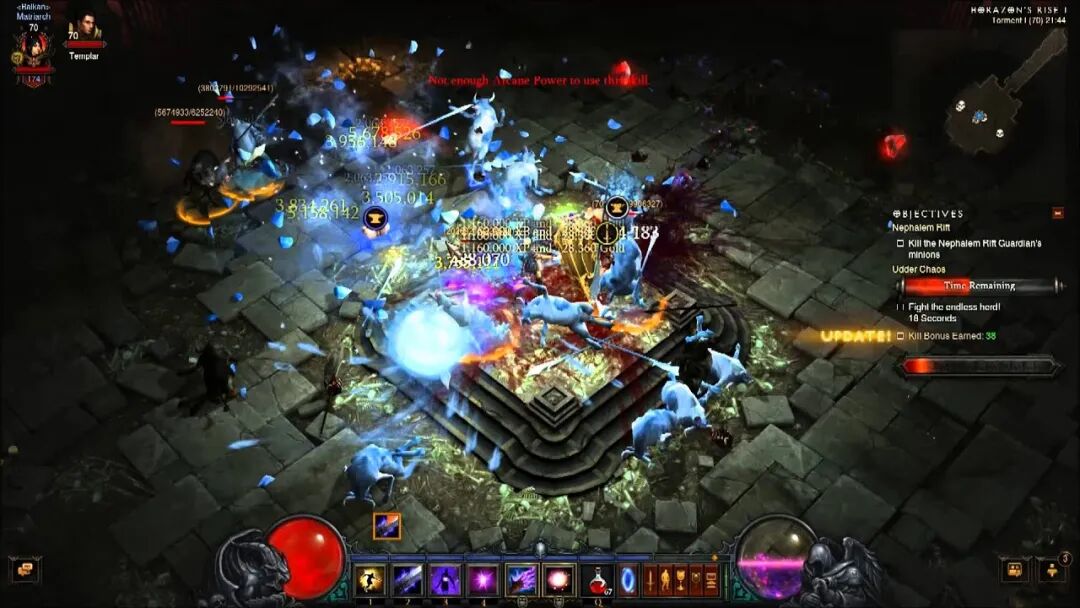 秘境作为《暗黑破坏神3》的核心玩法,在《不朽》里被进行了大幅度的改动,《暗黑3》里的小秘境采用动态难度,有装备和金钱掉落,刷小秘境出大秘境门票,大秘境的特点是随着层数固定难度,时限内打完可以升级传奇宝石,层数越高,能升的等级越高,大秘境打完就掉一地装备。