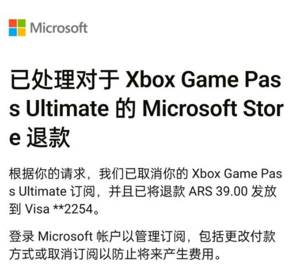 微软方面对这些订阅进行了退款,但收到的反馈普遍是退款39阿根廷比索,合人民币约2.13元,退回第三方卖家的购买账户。