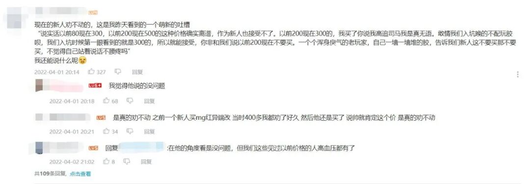 老玩家:别高价买,天天高价买,难怪奸商敢一直涨价。