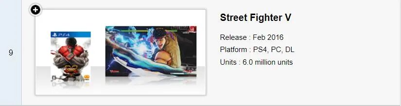 就以《街霸5》举例,虽然销量不如《生化危机7》以及怪物猎人的几部新作,但依旧力压《鬼泣5》的470万份,以及《生化危机8》的480万份,以600万份的销量占得卡普空游戏销量总榜的第九位。