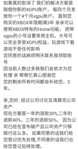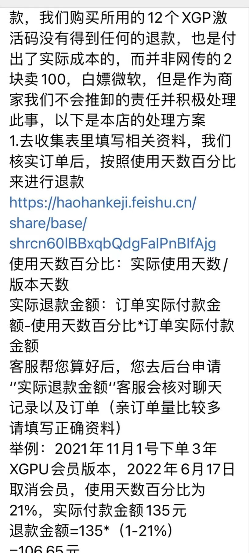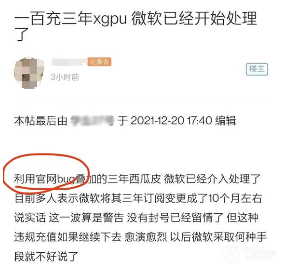 正如部分玩家担心的一样,去年12月下旬,就有所谓的知情网友发帖透露,微软已经开始处理100元充3年XGPU服务,甚至预言了半年后微软的处理结果:收回订阅资格并退款,账号正常使用。