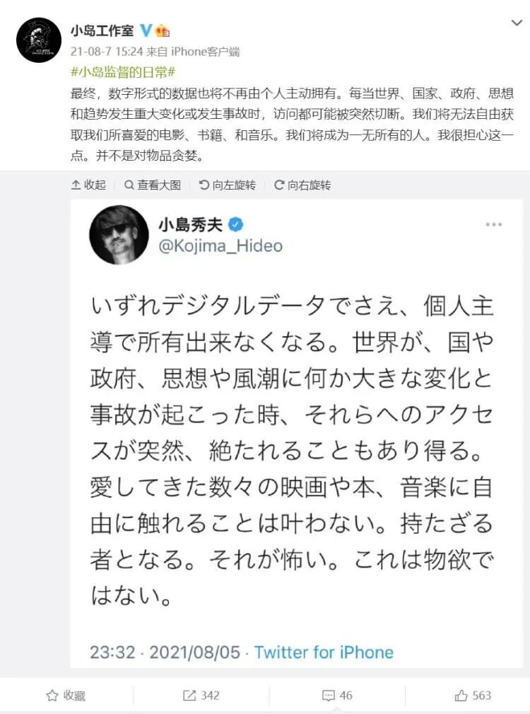 小岛秀夫认为数字形式的数据并不能为个人永恒的拥有,重大事件发生时,数字与网络会被突然切断。然而实体游戏,也会因为硬件被淘汰而无法运行,或者遇到天灾被物理损毁。