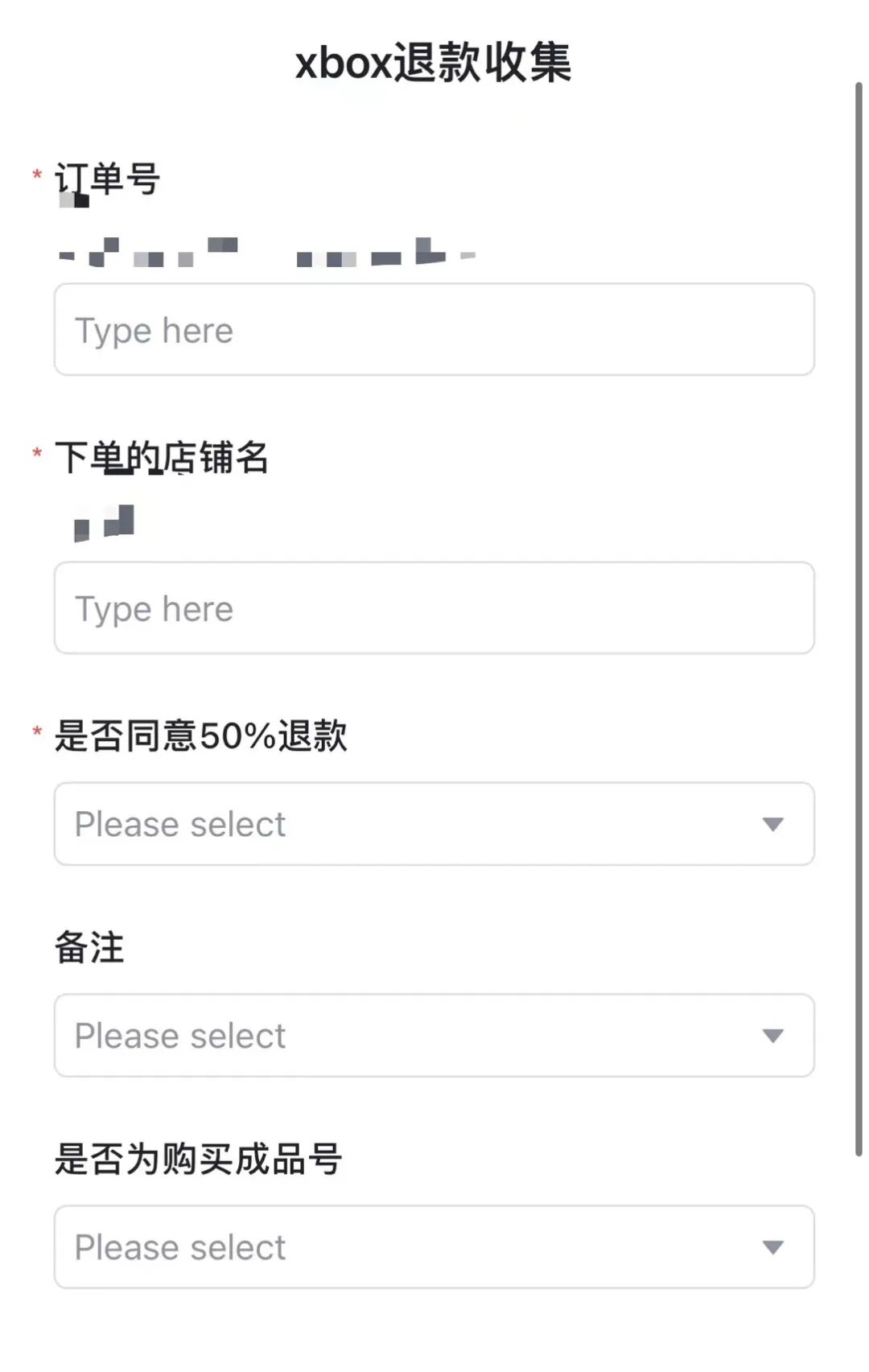 让我觉得很哭笑不得的一点是,与我对接的店铺客服在收集我所提交的退款申请时,不小心发送了另一个版本的在线问卷地址,其中可以选择是否同意50%退款,对此我只能无奈地表示:“你们也破产了?”