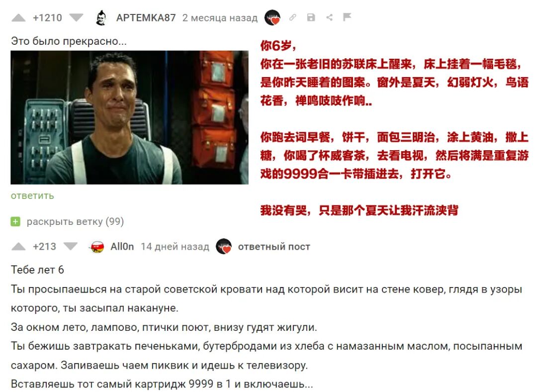 一帮大三四十好几,头发全长到下巴上的大老爷们抡起伏特加在互联网抱团痛哭,那评论区的画面,就像大伊万爆炸般有冲击力。