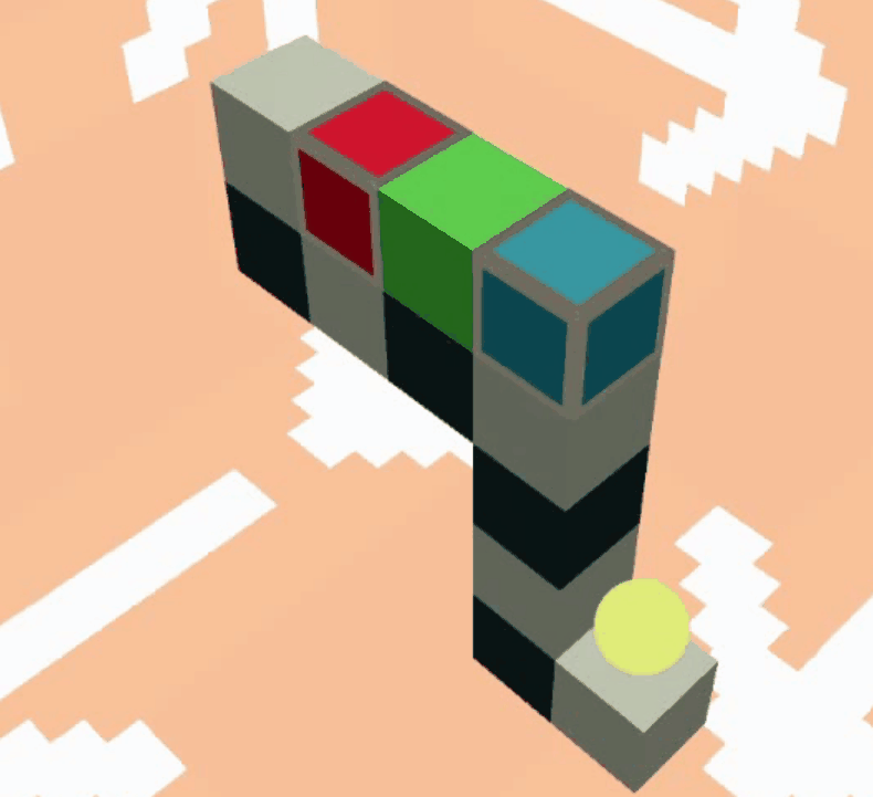 这是一个三维推箱子游戏——在这个足以让人望而生畏的题材下,游戏还加入了“当玩家角色试图移动而被阻碍时,会转而走到前方的面上”,“游戏系统的重力随着主角而改变”,“部分物体会和具有相同属性的物体粘在一起”等设定。
