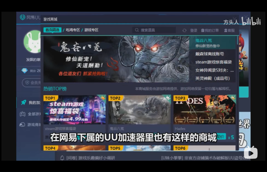 事件一出,玩家们相当一部分的火力直接倾泻到了腾讯身上。后来,又有人发现不仅腾讯家的网游加速器,用户规模更大的网易UU加速器同样存在“游戏商城”模块,而且从《鬼谷八荒》《戴森球计划》到《哈迪斯》等大批国内外游戏都有低价离线版本可售。