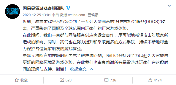 就算是网易暴雪,也只能任凭DDoS攻击断断续续的对服务器攻击了一个月