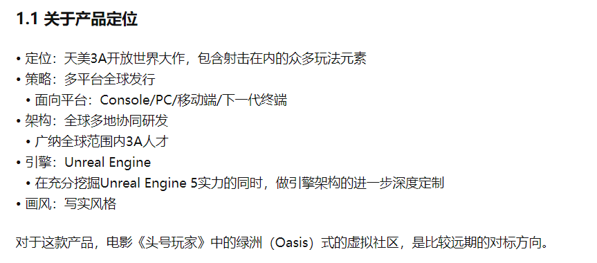 腾讯在去年向内部传递关于“全真互联网”的信息后,天美工作室这个月初发布了新的招聘,声称他们正在筹备跨平台3A主机游戏的研发,远期对标方向正是《头号玩家》中的“绿洲”式的虚拟社区。