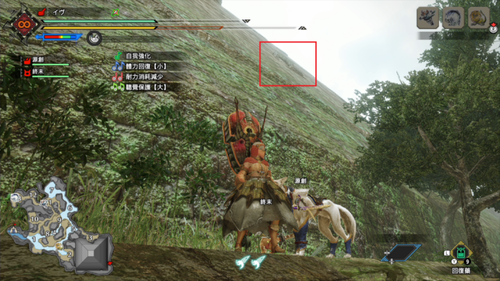 其次,是对《世界》系统的保留和修改,体验糟糕的导虫系统和“摸脚印”被取消,简约的导向机制回归,配合牙猎犬骑乘的加入,让玩家迅速到达战场,迅速展开狩猎,毫不拖泥带水,在牙狩犬背上允许使用部分道具的设定,也让体验更加流畅。