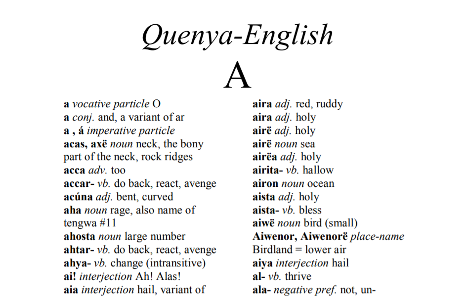 托尔金不仅在书稿中零散地使用这些异世界语言,还系统性地制定了语法规则、常用词汇表,如今网上可以很方便地搜索到精灵语词典。