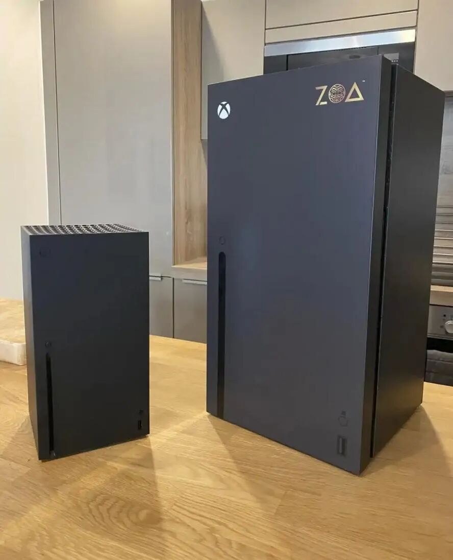 在那台真实比例的XSX冰箱里塞了些吃喝,还有一台真正的XSX(我愿称之为Xbox套娃)