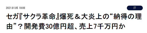 爆料中还提到,《樱花革命》如果每月不达到6亿日元的营销额就会亏损,如果一年内不能赚回6-8亿日元基本确定捞不回本金,至于为什么损益线这么高,主要是因为本作开发成本是DW与世嘉对半,开发经费也超过了网传的30亿日元。