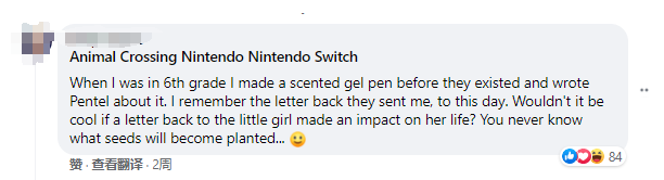 “在我六岁的时候,我做了一支带有香味的中性笔。那时候,市场上并不存在带有香味的中性笔,我拿这支笔给派通(著名的文具制造商)写了一封信,我至今都记得他们给我的那封回信。如果任天堂也给这个小女孩回了信,并对她今后的人生产生了影响,那不是很酷吗?你永远也不知道自己会为自己的人生种下什么样的种子……”