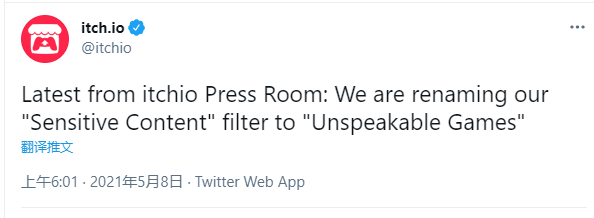 为了反驳这项指控,itch.io表示他们将把一些“敏感内容”分类改为“不可描述的游戏”。