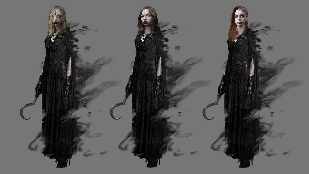 在《生化8》的开发者访谈中,制作人谈及之所以会为女爵的三个女儿设计黑色长裙,目的就在于美艳的黑衣女子会让人联想到传统的女巫形象。