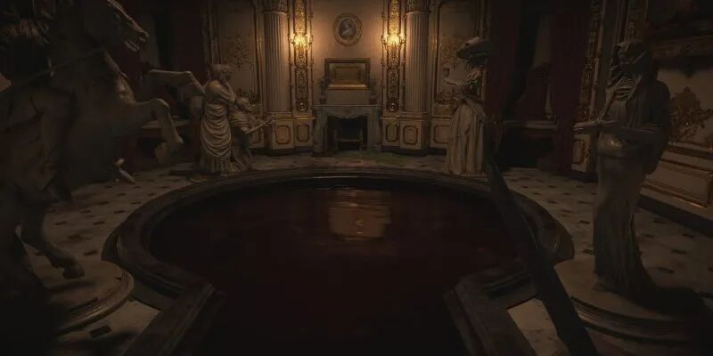 当玩家进到女爵城堡里一间需要调整四个雕像解谜的浴室时,会发现特大号浴缸中盛满了鲜血,说明女爵要么关注了上面那两位名媛的社交网络账号,要么她就是亲自下场扮演了《生化》宇宙这个平行世界里的克斯特或巴托里。