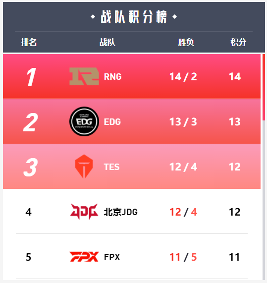 这个排名看起来十分合理,至少RNG的粉丝们没有什么意见